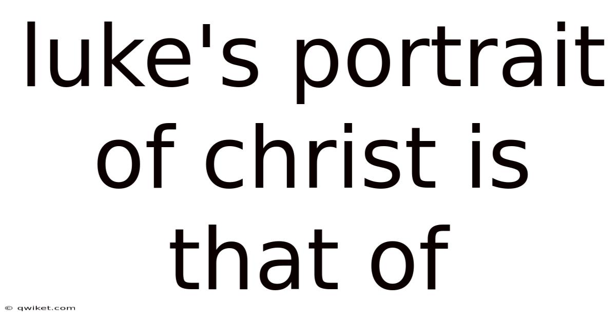 Luke's Portrait of Christ: A Visual and Spiritual Portrait