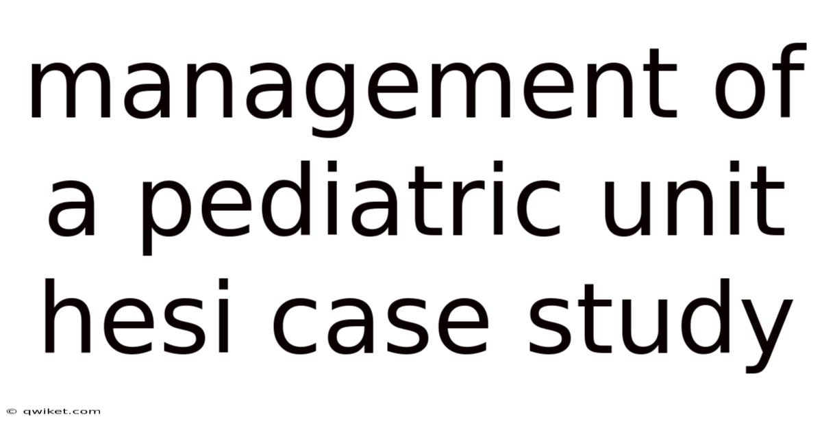 In the world of healthcare, managing a pediatric unit requires a delicate balance of clinical expertise, compassionate care, and strategic planning. So the HESI (Health Education Systems, Inc. Think about it: ) case study provides a framework to explore the complexities and challenges faced by healthcare professionals in pediatric settings. This article looks at the key aspects of managing a pediatric unit, drawing insights from the HESI case study, to offer a comprehensive understanding of the essential elements involved in ensuring the well-being of young patients Worth keeping that in mind..