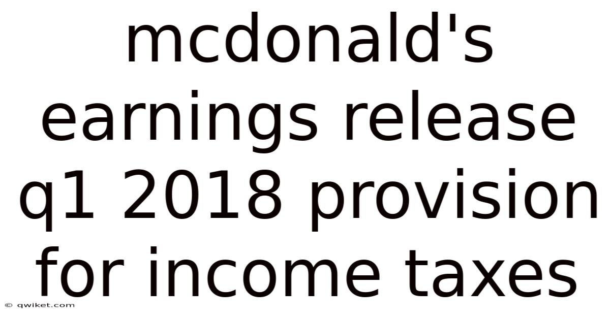 Mcdonald's Earnings Release Q1 2018 Provision For Income Taxes