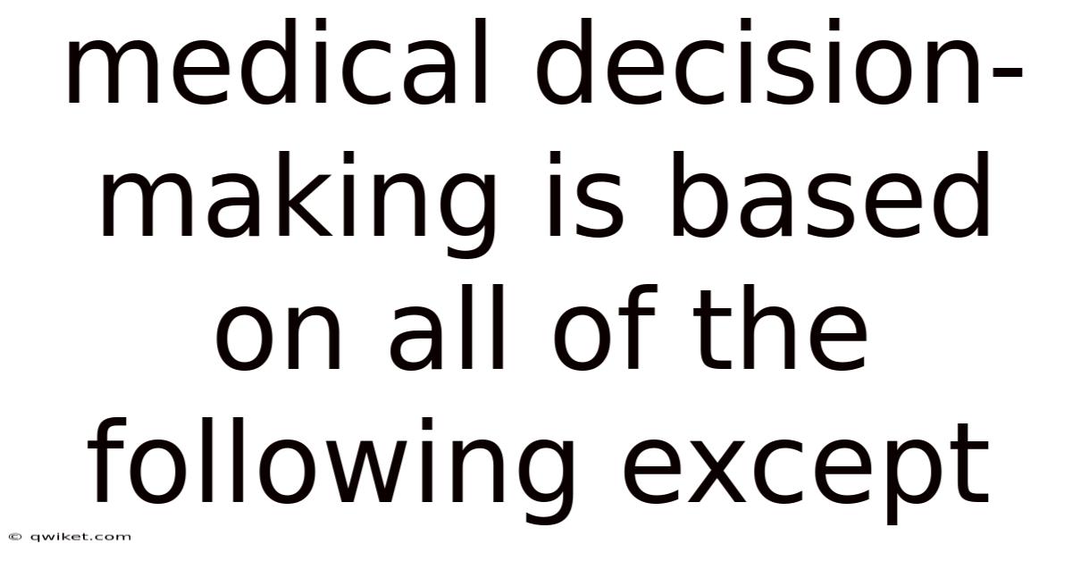 Medical decision-making is a cornerstone of modern healthcare, guiding clinicians through complex scenarios to determine the best course of action for patient well-being. This detailed process relies on a structured evaluation of evidence, patient values, and clinical expertise to ensure optimal outcomes. The phrase medical decision-making is based on all of the following except serves as a critical thinking prompt, highlighting that not every factor encountered in a clinical setting should automatically influence the final judgment. Understanding what should be excluded is as vital as knowing what should be included, as it helps prevent biases, errors, and deviations from evidence-based practice. This article explores the fundamental pillars of clinical reasoning while clarifying the elements that fall outside the accepted framework for sound medical judgment It's one of those things that adds up..