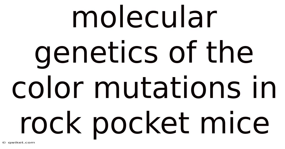 The short version: the molecular genetics of color mutations in rock pocket mice provide a compelling example of how genetic changes can drive adaptive evolution. Through mutations in genes like MC1R and Agouti, these mice have evolved a range of color phenotypes that match their local environments, illustrating the dynamic interplay between genotype, phenotype, and natural selection. As research continues, the rock pocket mouse will undoubtedly remain a key model for unraveling the genetic basis of adaptation Worth keeping that in mind..