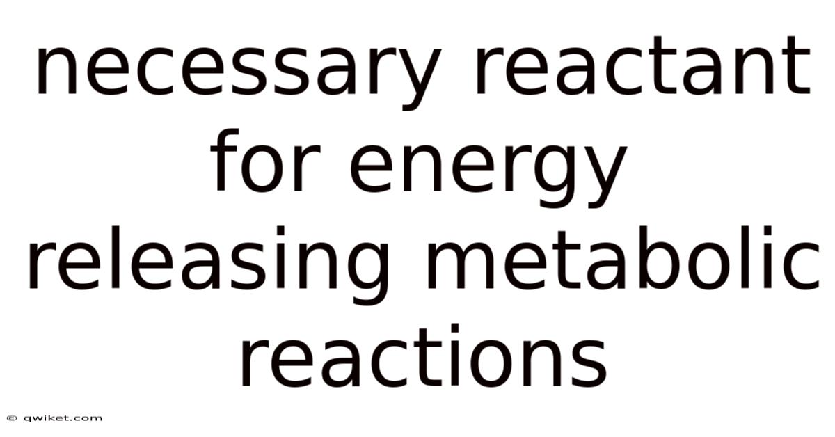 Necessary Reactant for Energy Releasing Metabolic Reactions: A Complete Guide