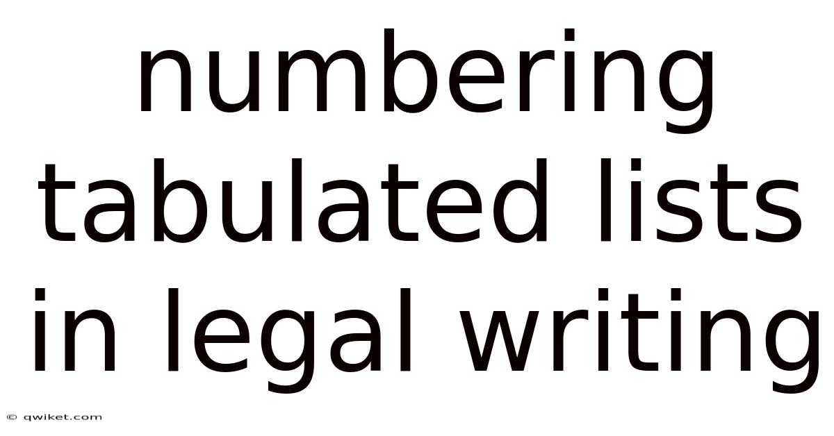Legal writing demands precision, clarity, and adherence to established conventions. In practice, among the various formatting tools available to legal writers, tabulated lists serve as an effective means of presenting complex information in an organized manner. Even so, the proper numbering of these lists is crucial for maintaining the professional standard expected in legal documents That alone is useful..