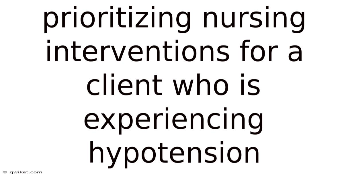 Prioritizing Nursing Interventions for a Client Experiencing Hypotension