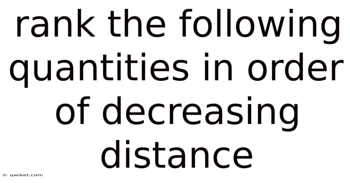 When faced with a set of quantities that represent distances—such as the radii of planetary orbits, the lengths of line segments, or the separations between celestial bodies—it is often necessary to arrange them in a specific order. Because of that, this task may appear straightforward, but it requires careful attention to units, conversion factors, and the context in which each distance is measured. In this article we will explore a step‑by‑step methodology, discuss the scientific principles that underlie distance measurement, and address common questions that arise during the ranking process. Ranking these quantities in decreasing distance means listing them from the greatest distance to the smallest. By the end, you will have a reliable framework for ordering any collection of distances with confidence and precision Surprisingly effective..