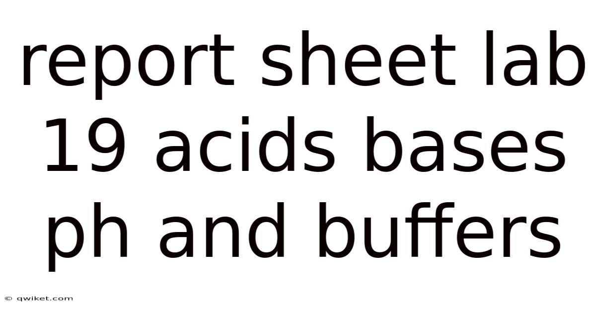 A report sheet for Lab 19: Acids, Bases, pH, and Buffers is more than just a collection of numbers and observations; it is a scientific narrative that documents your understanding of how chemical equilibrium dictates the behavior of substances in aqueous solutions. Whether you are a chemistry student navigating your first titration or an advanced learner analyzing buffer capacity, mastering this lab report requires a deep dive into the mathematical and conceptual frameworks of pH, pOH, acid-base neutralization, and buffering systems. This guide will walk you through the essential components of the lab, the scientific principles behind the experiments, and how to present your findings with professional accuracy No workaround needed..