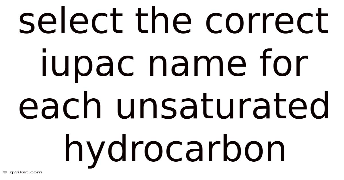 Understanding the correct IUPAC name for each unsaturated hydrocarbon is a fundamental skill in chemistry that can greatly enhance your ability to communicate scientific concepts clearly. Practically speaking, unsaturated hydrocarbons, also known as alkenes, contain one or more double bonds within their molecular structure. And mastering the process of naming these compounds is essential for students, educators, and professionals alike. This article will guide you through the essential steps, provide practical examples, and point out the importance of precision in chemical nomenclature And it works..