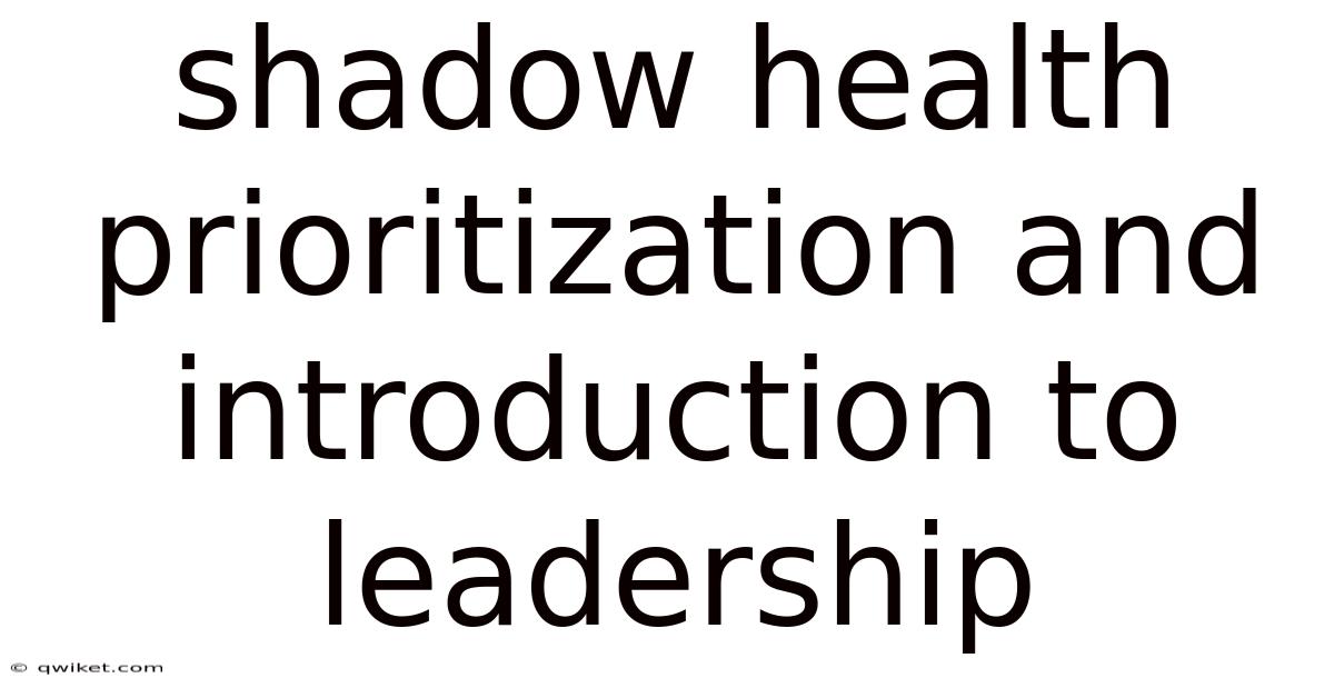 Shadow Health Prioritization And Introduction To Leadership