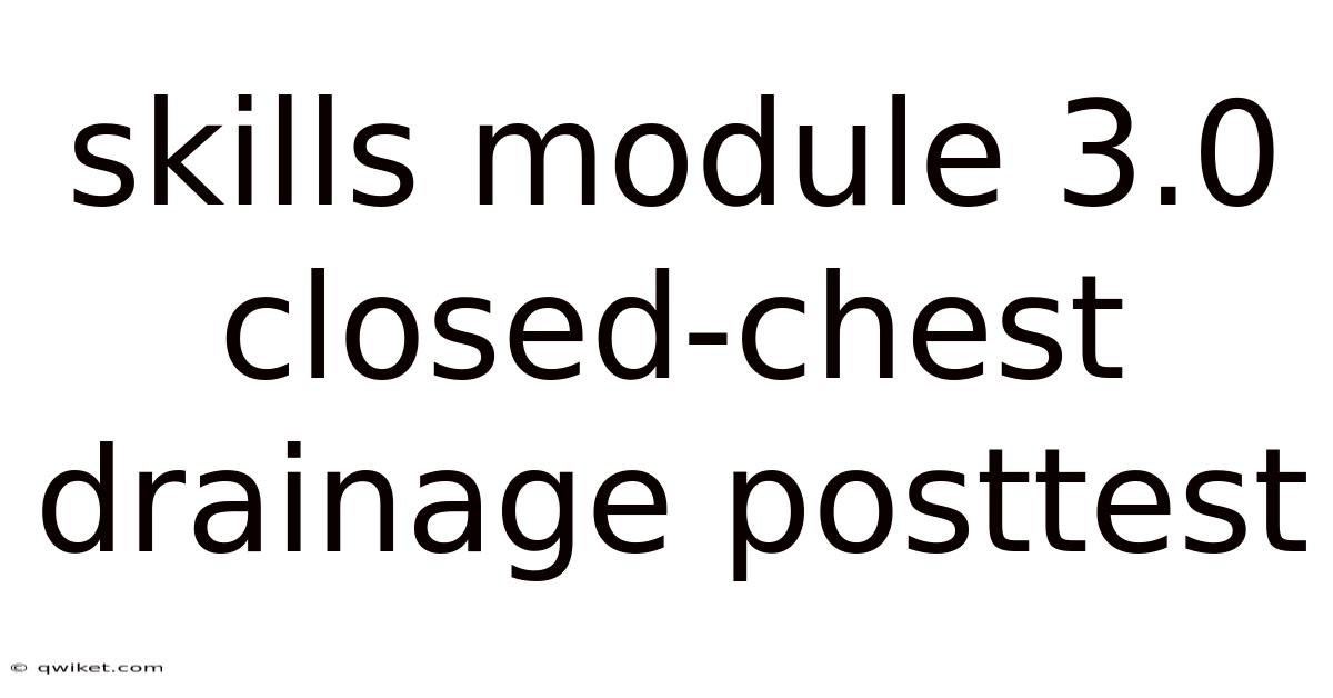 The Skills Module 3.Which means by rigorously assessing both theoretical knowledge and practical application, the posttest reinforces the importance of precision, vigilance, and patient-centered care. In real terms, mastery of closed-chest drainage techniques not only enhances clinical competence but also directly contributes to improved patient outcomes, reduced complications, and heightened safety standards. On the flip side, as healthcare continues to evolve, ongoing education and skill validation remain essential, empowering practitioners to deliver care that is both technically proficient and compassionately delivered. 0 Closed-Chest Drainage Posttest serves as a critical benchmark in ensuring healthcare professionals are fully prepared to manage patients requiring this specialized intervention. At the end of the day, the integration of comprehensive training, continuous assessment, and reflective practice ensures that closed-chest drainage is performed with the highest level of expertise, safeguarding patient health and advancing the quality of care across clinical settings.