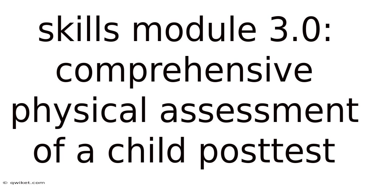 The Skills Module 3.0: Comprehensive Physical Assessment of a Child is a cornerstone of pediatric nursing education, and the post‑test serves as the final checkpoint to confirm mastery of the assessment process. This article unpacks the purpose of the post‑test, outlines the key competencies it evaluates, and provides a step‑by‑step guide for preparing and succeeding on the exam. By understanding the underlying concepts, common pitfalls, and evidence‑based techniques, students can translate theoretical knowledge into confident, safe, and holistic care for children of all ages Worth keeping that in mind..