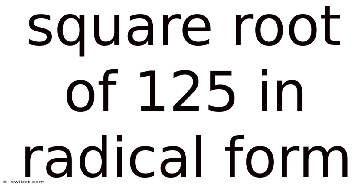 That's why, the square root of 125 in radical form is 5√5. This is the most reduced version of the radical, meaning no further simplification is possible because the remaining radicand (5) is a prime number and not a perfect square It's one of those things that adds up..