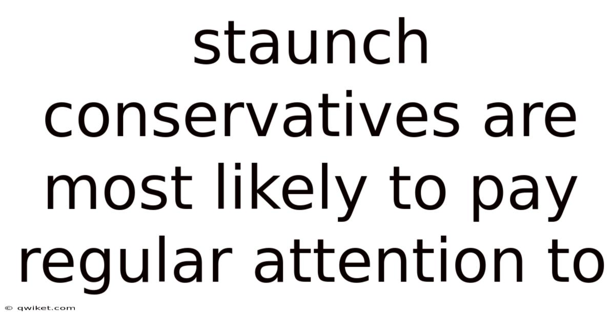 In today’s polarized political landscape, staunch conservatives are most likely to pay regular attention to media outlets and platforms that reinforce their worldview. This phenomenon isn’t merely a matter of preference—it’s rooted in a complex interplay of ideology, identity, and the structure of modern media ecosystems. Understanding why staunch conservatives prioritize certain sources of information reveals broader trends in how political affiliation shapes media consumption, trust, and engagement That's the whole idea..