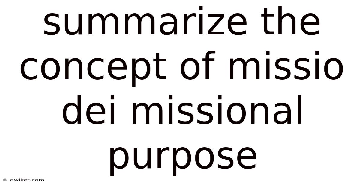 Summarize The Concept Of Missio Dei Missional Purpose