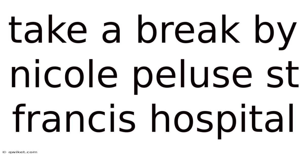 Take A Break By Nicole Peluse St Francis Hospital