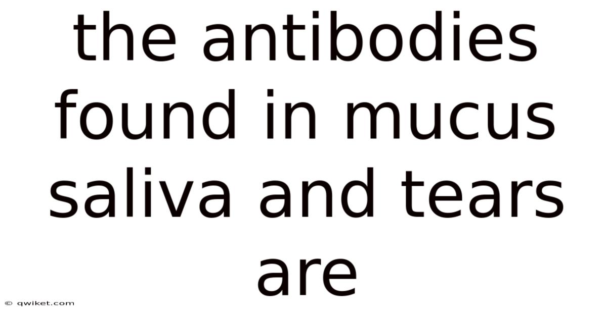 Before diving into the specific secretions, You really need to understand the broader context of mucosal immunity. Mucosal surfaces—such as those lining the respiratory tract, gastrointestinal system, and eyes—are the primary gateways for pathogens entering the body. To protect these vulnerable areas, the immune system has deployed a specialized arsenal. The antibodies found in mucus, saliva, and tears are not random proteins; they are strategically positioned immunoglobulins designed to neutralize invaders before they can establish an infection. In practice, unlike systemic antibodies, which are distributed via the bloodstream, these secretory antibodies operate in the external environment, acting as the first physical and chemical barrier against bacteria, viruses, and other harmful entities. This localized defense mechanism is crucial because it prevents pathogens from ever gaining a foothold in the body, reducing the need for a full systemic immune response But it adds up..