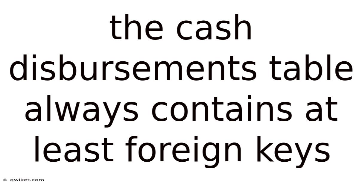 A cash disbursements table that always contains at least foreign keys is not just a database design nicety—it is a foundational requirement for accurate accounting, reliable reporting, and strong compliance. By linking disbursements to vendors, GL accounts, and other relevant entities, you create a transparent, auditable, and efficient financial system Simple, but easy to overlook..