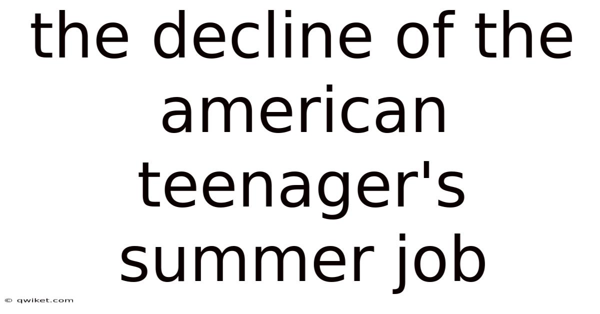 The Decline of the American Teenager’s Summer Job: A Cultural and Economic Shift