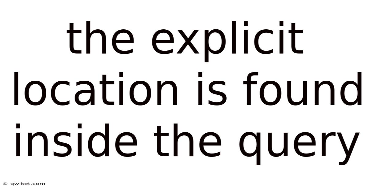 The explicit location isfound inside the query when users directly specify a geographical area, city, or landmark within their search terms. When a query includes a specific place name, such as "restaurants in Tokyo" or "weather in Paris," the explicit location is embedded within the text of the query itself. Even so, the presence of an explicit location in a query is not just a convenience for users but a critical factor in delivering accurate, targeted information. Consider this: this concept is central to how search engines and data systems interpret user intent, especially in location-based searches. This clarity allows systems to prioritize results relevant to that specific area, bypassing the need for additional context or geolocation data. Understanding where and how this location is identified within the query structure is essential for optimizing search strategies, improving user experience, and ensuring relevance in digital interactions Most people skip this — try not to..
