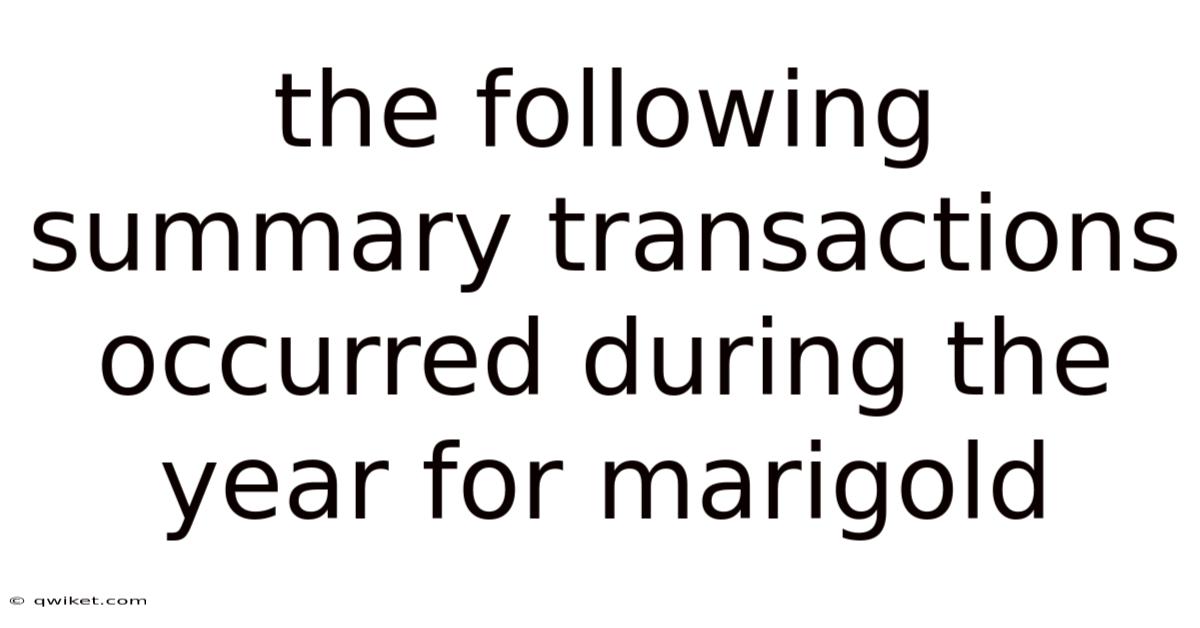 A transaction summary is more than a list of numbers; it is a narrative of a company’s day‑to‑day decisions. For Marigold, the annual summary serves several crucial purposes:
