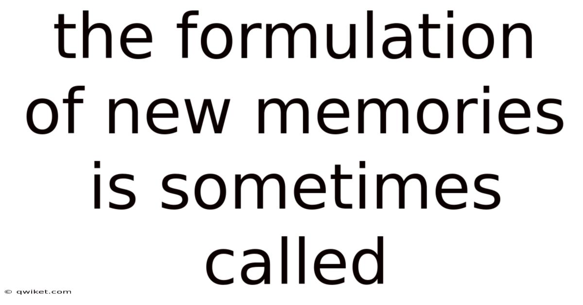 The Formulation Of New Memories Is Sometimes Called