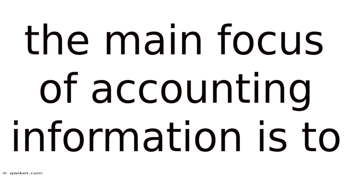 The main focus of accounting information is to provide reliable, relevant, and timely financial data that supports effective decision-making, ensures accountability, and promotes transparency within organizations and across the broader economy. This fundamental purpose drives every aspect of how accounting systems are designed, maintained, and reported to various stakeholders who depend on accurate financial information to figure out complex business environments Most people skip this — try not to..
