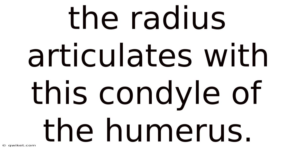 The Radius Articulates with the Condyles of the Humerus: Anatomy, Function, and Clinical Significance