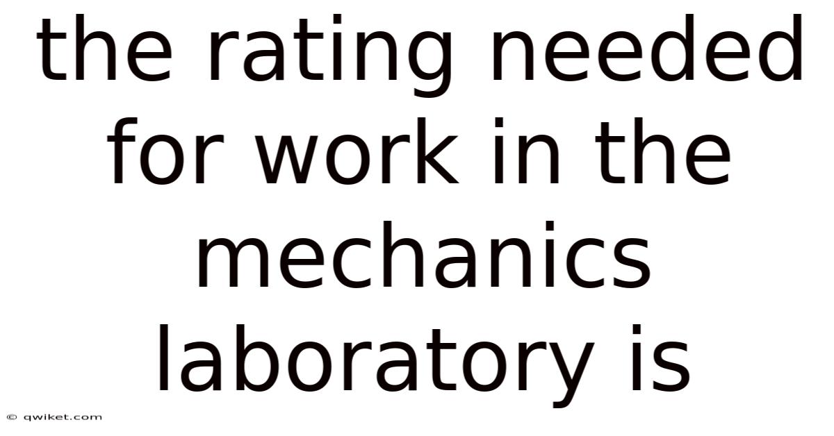 The rating required for work in a mechanics laboratory is fundamentally a safety certification and competency assessment mandated by regulatory bodies and institutional policies. It ensures individuals possess the necessary knowledge, skills, and awareness to perform tasks safely and effectively within potentially hazardous environments. This certification isn't merely a formality; it's a critical safeguard protecting both personnel and equipment Worth knowing..