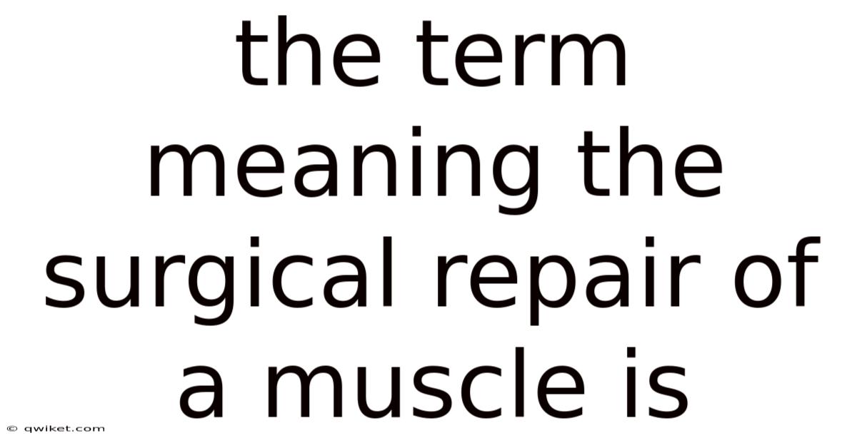 Muscle injuries are common in both athletes and individuals engaged in physically demanding activities. Even so, while minor strains or tears often heal with rest and conservative treatments, severe damage may necessitate surgical intervention. The surgical repair of a muscle is a specialized orthopedic procedure designed to restore function, alleviate pain, and prevent long-term disability. This article explores the indications, techniques, recovery process, and outcomes associated with this critical intervention It's one of those things that adds up..