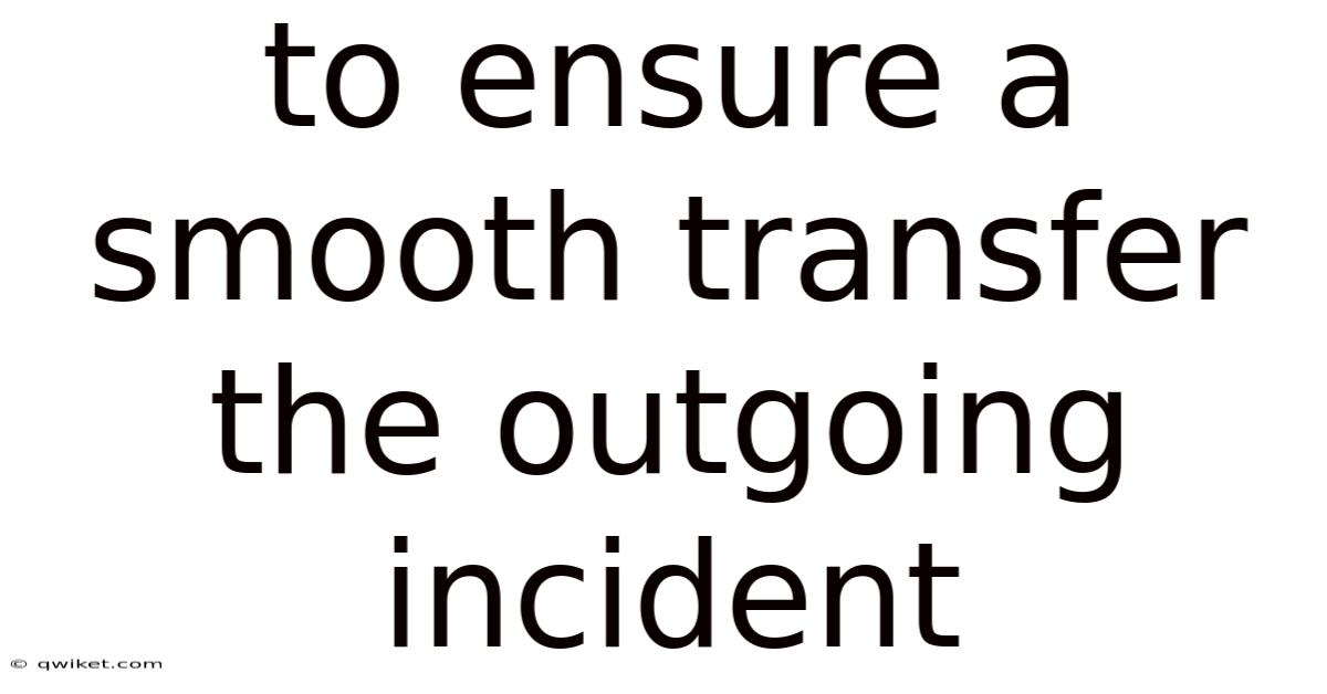 Ensuring a smooth transfer of the outgoing incident is a vital component of effective incident management. Worth adding: by preparing comprehensive documentation, conducting structured handovers, verifying understanding, and maintaining open communication, organizations can minimize disruptions and maintain operational continuity. Implementing best practices and leveraging technology further enhances the handover process. The bottom line: a well-executed handover not only safeguards the organization but also empowers teams to respond swiftly and effectively to incidents That's the whole idea..