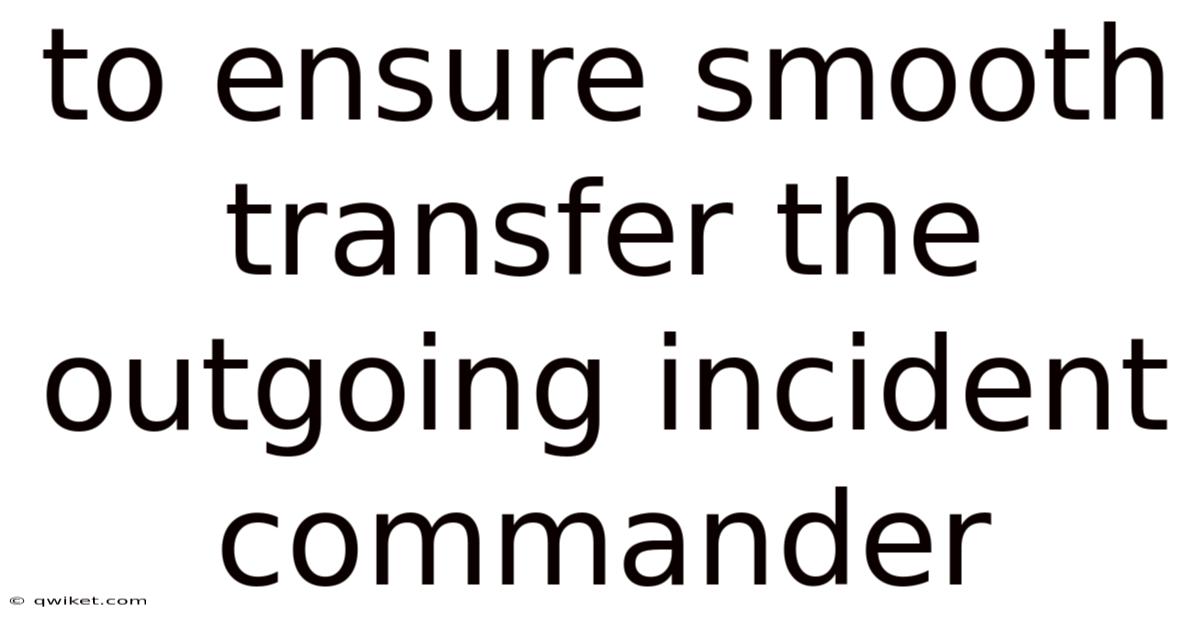 A smooth transfer of the outgoing incident commander is not merely a procedural formality; it is a cornerstone of effective incident management. When this role changes, the new commander must inherit a clear understanding of the current status, ongoing tasks, and potential challenges. And the incident commander is typically the central figure responsible for coordinating resources, making critical decisions, and maintaining situational awareness. Without a structured handover, the new IC may face gaps in knowledge, conflicting priorities, or a lack of trust in the team’s capabilities Surprisingly effective..