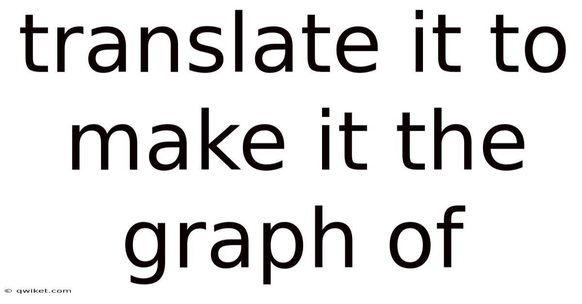 When you hear the phrase “translate it to make it the graph of” you are essentially being asked to convert a mathematical description—usually an algebraic equation—into a visual representation on the coordinate plane. This process, known as graphing a function, is a cornerstone of algebra and calculus because it lets us see the behavior of a relationship at a glance. In this article we will explore how to translate any given function into its graph, step by step, while covering the underlying concepts, common transformations, and practical tips that make the whole procedure intuitive for students, teachers, and anyone who works with data Simple as that..