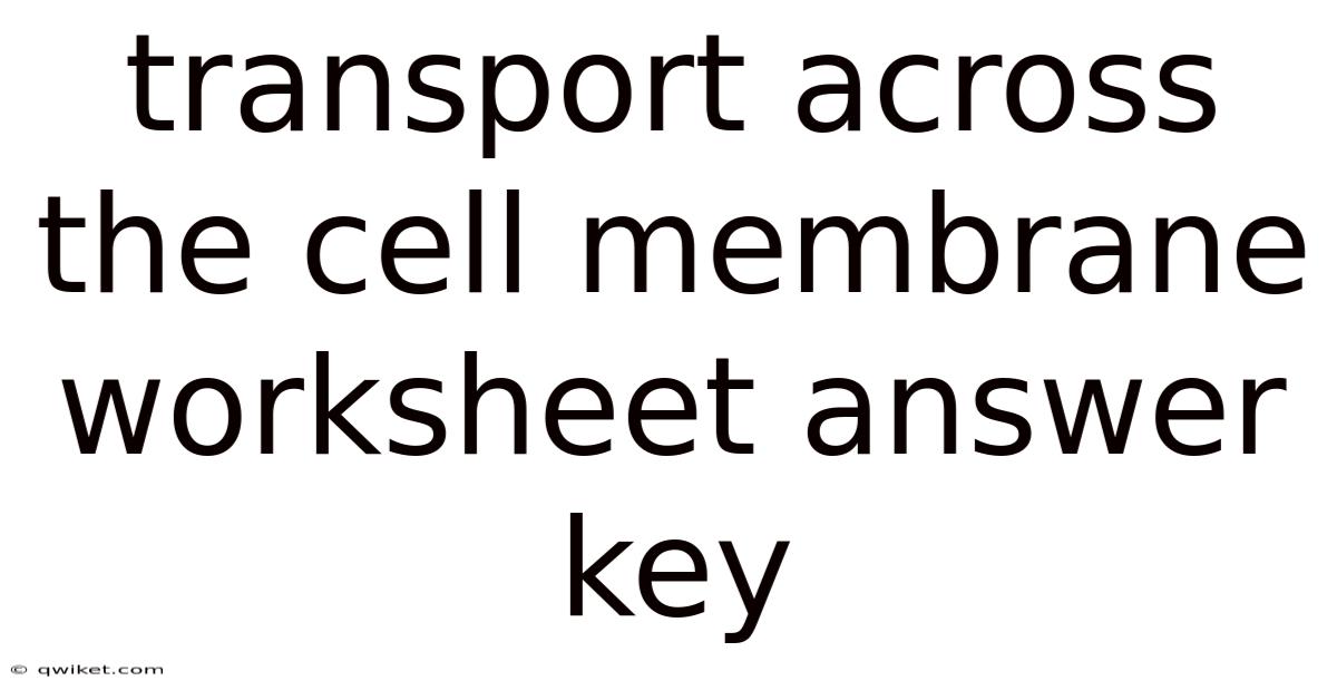 Transport Across The Cell Membrane Worksheet Answer Key