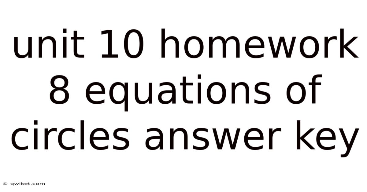 Delving into the world of mathematics, specifically geometry, one encounters the fascinating concept of circles. Which means a circle is a two-dimensional shape defined by a set of points equidistant from a central point, known as the center. This article aims to guide you through the intricacies of the equations of circles, focusing on the key concepts covered in Unit 10 Homework 8, and providing an insightful answer key to enhance your understanding Most people skip this — try not to..