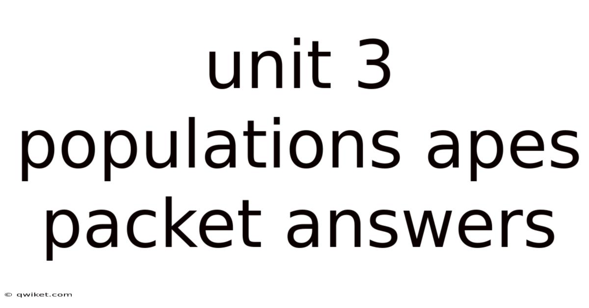 Unit 3 Populations Apes Packet Answers: A practical guide