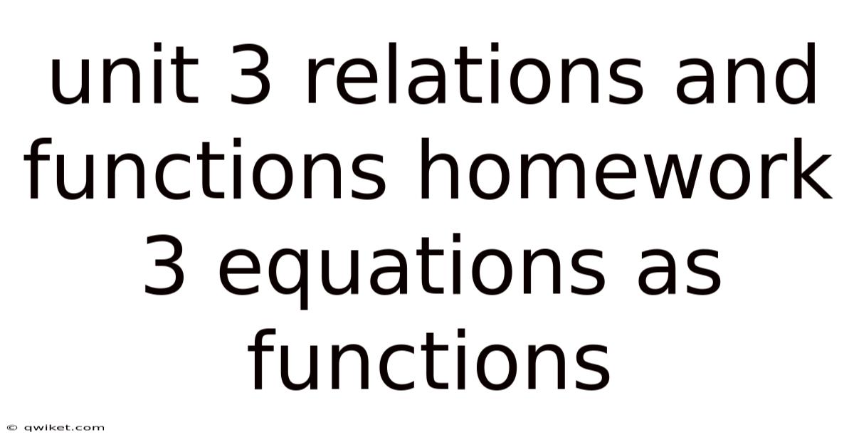 Unit 3 Relations and Functions homework 3 equations as functions demands a thorough understanding of algebraic principles and their practical applications. By examining how equations transform into functions, learners grasp the mechanics behind modeling complex systems through mathematical precision. This chapter walks through the core concepts that bridge theoretical knowledge with real-world problem-solving, offering students a reliable foundation for mastering third-degree polynomial relationships. Whether analyzing geometric shapes, economic models, or biological processes, the ability to represent such relationships accurately through functions becomes indispensable. This section emphasizes the importance of clarity and accuracy, ensuring that even those new to advanced mathematics can manage the intricacies without confusion. The goal is not merely to recall formulas but to internalize their purpose and utility, fostering confidence in applying these tools across diverse disciplines Small thing, real impact..