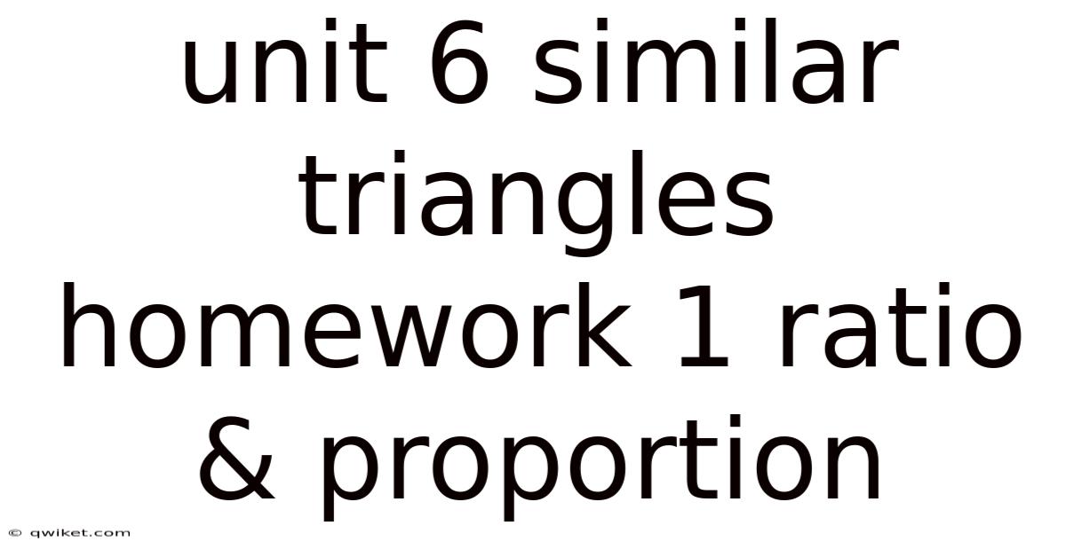 When students tackle unit 6 similar triangles homework 1 ratio & proportion, they are often introduced to one of the most fundamental concepts in geometry: the relationship between similar triangles and proportional reasoning. In real terms, similar triangles are triangles that have the same shape but differ in size, and their sides are related through ratios. This homework typically requires learners to apply their understanding of ratios and proportions to solve problems involving missing side lengths or verifying similarity. The ability to work with ratios and proportions is not just a mathematical skill—it is a critical tool for analyzing geometric relationships and real-world applications Nothing fancy..