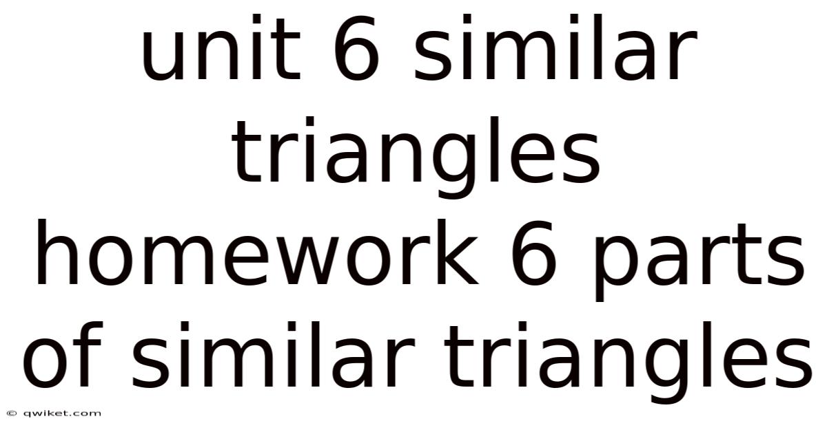 Similar triangles are a cornerstone of geometry, appearing in everything from architectural design to computer graphics. Now, in Unit 6, the focus is on identifying, proving, and applying similarity relationships. This article walks you through the six essential parts of a typical homework assignment on similar triangles, offering clear explanations, step‑by‑step solutions, and practical tips to master the concepts The details matter here..