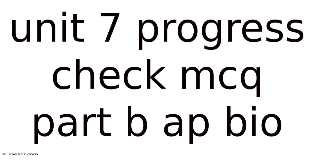 The unit 7 progress check serves as a checkpoint for mastery of the AP Biology curriculum, particularly focusing on topics such as cell division, genetics, and ecological interactions. Day to day, within this unit, Part B consists of multiple‑choice questions that require you to analyze stems, interpret data, and select the best answer based on rigorous reasoning. Now, mastery of this section not only improves your test score but also reinforces the analytical skills essential for higher‑level biology studies. By following a systematic approach and grounding your answers in core scientific principles, you can transform challenging questions into opportunities for demonstration of knowledge Easy to understand, harder to ignore. That alone is useful..