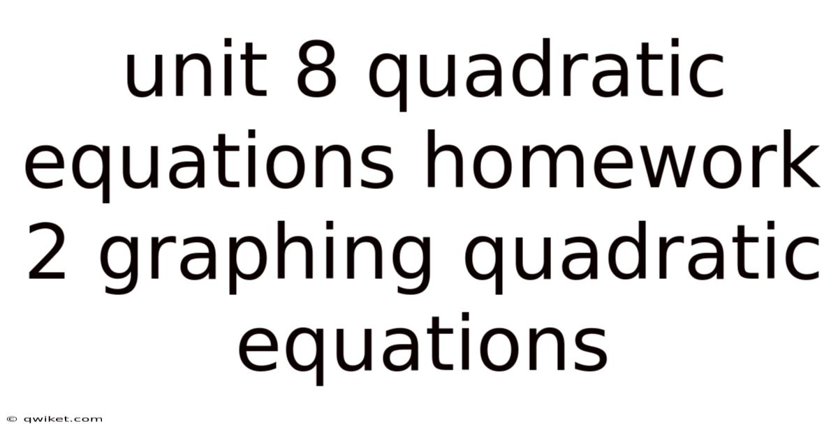 Graphing quadratic equations transforms abstract algebra into a visual story of curves and intersections, revealing the hidden behavior of parabolic functions. Practically speaking, for students tackling Unit 8 Quadratic Equations Homework 2, mastering this skill is crucial—it’s the bridge between symbolic manipulation and real-world application. This guide will walk you through the process, not just as a set of steps, but as a method to truly see and understand the equation ( ax^2 + bx + c = 0 ). You’ll learn to plot parabolas with confidence, interpret their key features, and avoid common pitfalls that trip up many learners And that's really what it comes down to..