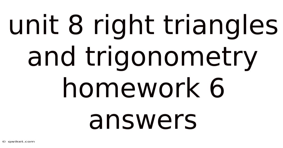 Right triangles form the foundation of trigonometry. Unit 8 builds on this by teaching you how to use sine, cosine, and tangent ratios to find missing sides or angles when you know one acute angle and one side length. Homework 6 specifically tests your ability to apply these ratios accurately. Mastering these skills is crucial not only for this unit but also for future topics like non-right triangle trigonometry and real-world applications like navigation and engineering. This article provides a complete walkthrough to solving the typical problems found in Homework 6, ensuring you understand the underlying principles and can confidently arrive at the correct answers Small thing, real impact. Worth knowing..