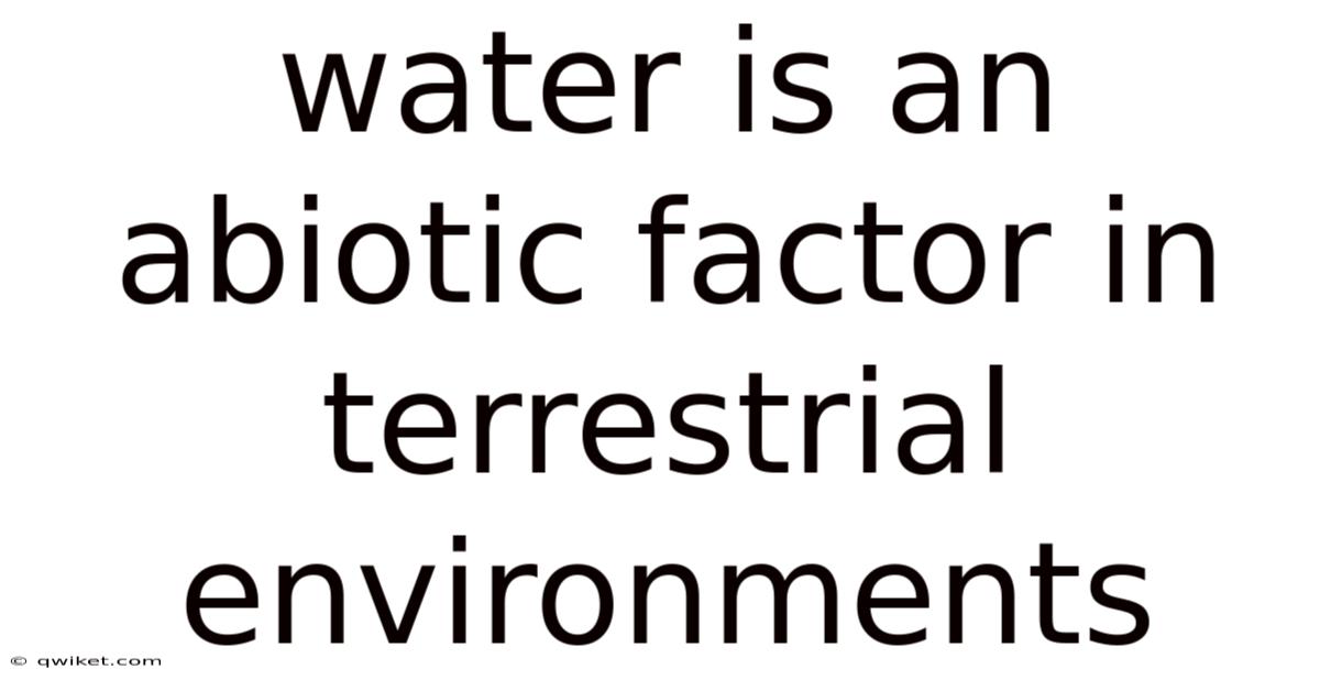 Water is an abiotic factor in terrestrial environments that shapes survival, distribution, and ecological balance across continents. In real terms, it is not merely a resource that organisms consume; it is a non-living force that alters landscapes, triggers migrations, and sets the boundaries of biological possibility. Day to day, from arid deserts to misty highlands, the presence or absence of water determines which species thrive and which vanish. While sunlight, temperature, and soil minerals often dominate textbook discussions, water quietly dictates the rhythm of life on land. Understanding this abiotic component reveals how terrestrial ecosystems function, adapt, and respond to change And it works..