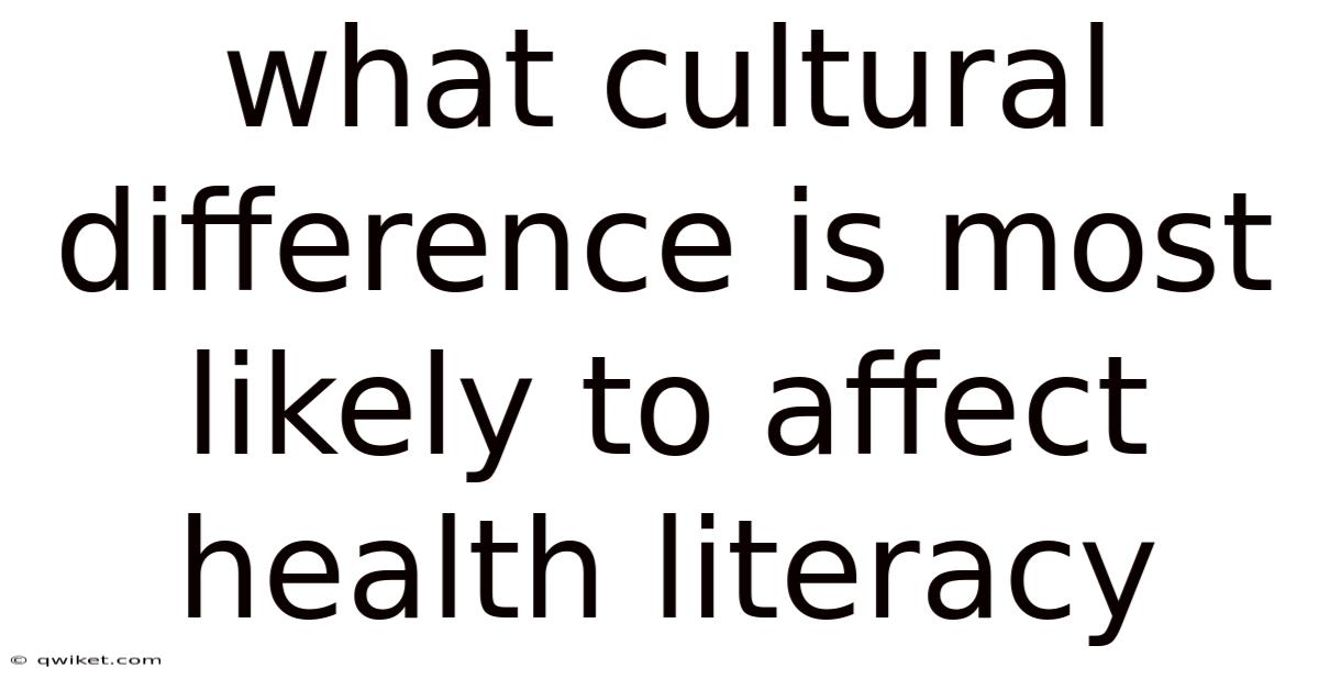What Cultural Difference Is Most Likely to Affect Health Literacy