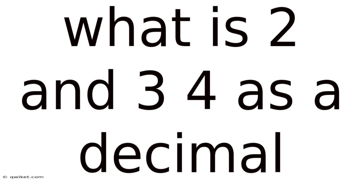 The phrase 2 and 3/4 as a decimal refers to expressing this mixed number in decimal form. Still, the answer is straightforward: 2. Also, 75. That said, the process of arriving at this answer involves understanding how fractions and decimals relate. This article will guide you through the steps, explain the math behind it, and answer frequently asked questions to deepen your comprehension No workaround needed..