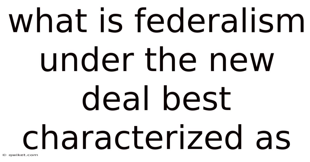 To best characterize federalism under the New Deal, one must look at the specific traits that defined this era: