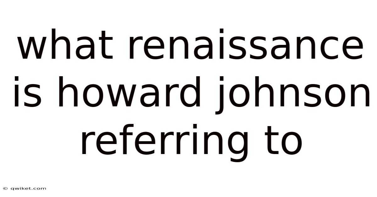 Understanding the Renaissance: Howard Johnson's Perspective