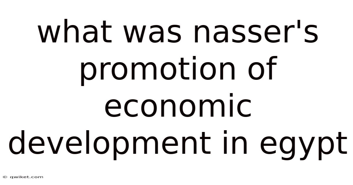 What Was Nasser's Promotion Of Economic Development In Egypt
