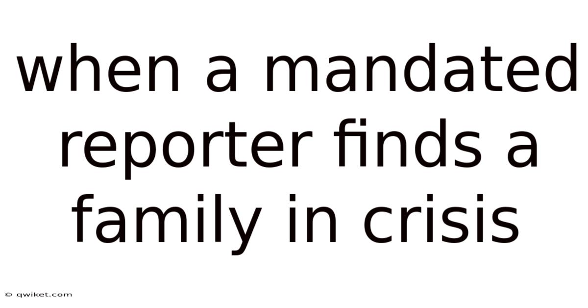 Discovering a family in crisis is one of the most challenging situations a mandated reporter can face. In real terms, whether you are a teacher noticing unexplained bruises on a student, a healthcare professional treating a child with suspicious injuries, or a social worker observing concerning living conditions, the weight of your legal and ethical responsibilities can feel overwhelming. Understanding your role as a mandated reporter is essential not only for protecting vulnerable children but also for supporting families through difficult times. This complete walkthrough will walk you through the recognition, response, and responsible action required when you suspect a family is in crisis That's the part that actually makes a difference..