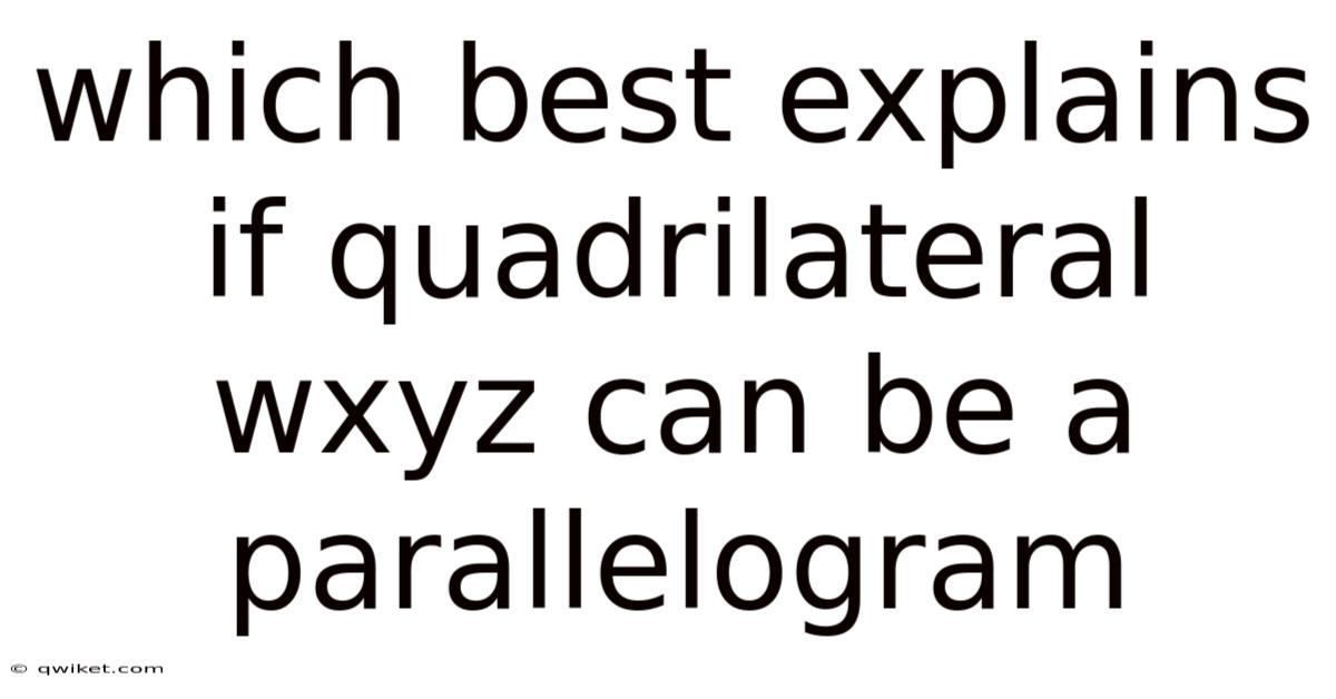 A quadrilateral wxyz canbe a parallelogram when its opposite sides are parallel and equal, and this article explains which best explains if quadrilateral wxyz can be a parallelogram by reviewing the defining properties, theorems, and practical tests that confirm its classification.