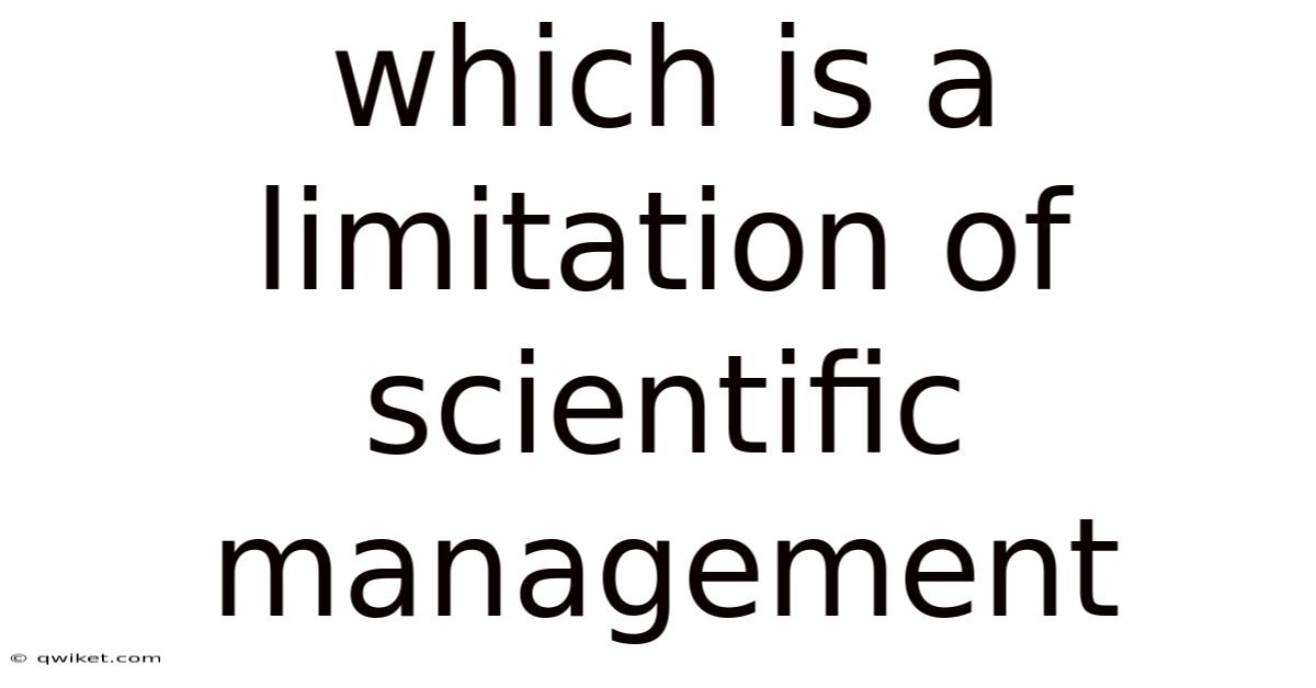 Q: Which limitation of scientific management is most significant? A: The neglect of the human element is often considered the most significant limitation because it undermines the very productivity that scientific management seeks to enhance.
