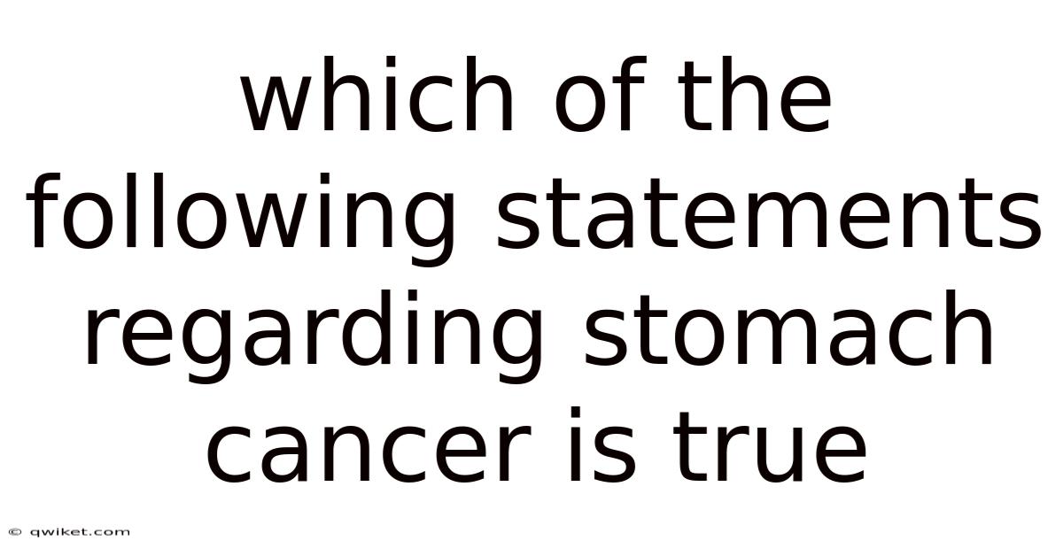 This statement is false. Only a small percentage of stomach cancers (about 1-3%) are caused by inherited genetic mutations. On the flip side, having a family history of stomach cancer can slightly increase an individual's risk. Other factors, such as lifestyle choices, environmental exposures, and infections like H. While genetics can play a role in some cases of stomach cancer, the majority of stomach cancers are not directly inherited. pylori, play a more significant role in the development of most stomach cancers That alone is useful..